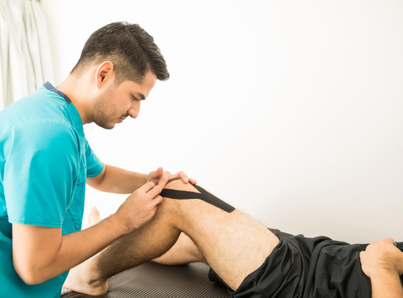 Taping is a technique to support muscles and joints, reduce pain and improve functional movement. It is commonly applied in sports rehabilitation, post-injury recovery, and for managing musculoskeletal conditions. Applying specialized adhesive tape to the skin in specific patterns depending on the condition.